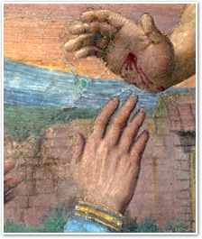 Thomas saw Jesus’ wounds.